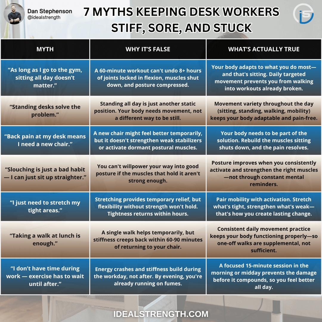 7 Myths Keeping Desk Workers Stiff, Sore, and Stuck (And the 15-Minute Solution That Actually Works)